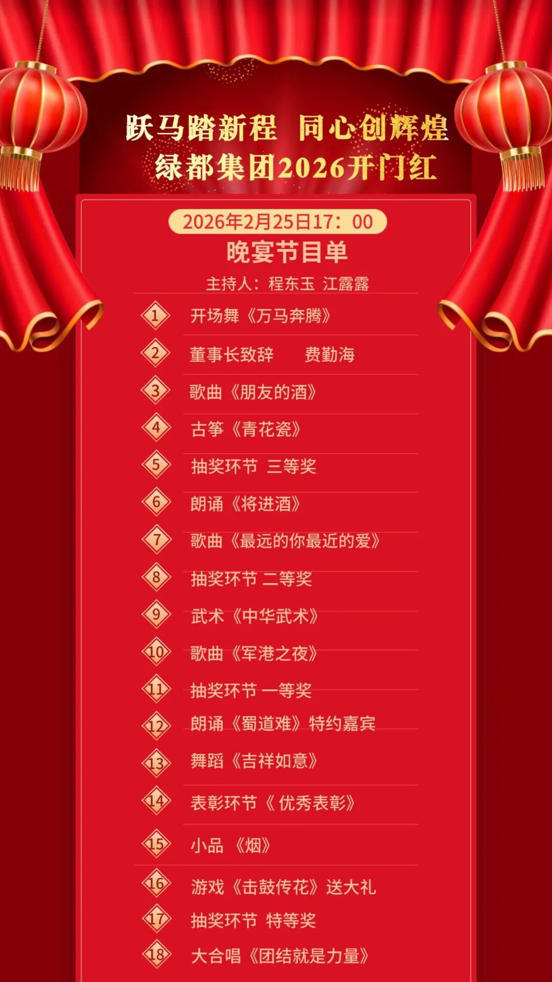 展望新程,整装待发,步履铿锵。绿都集团将以开门红年会精神为指引,坚守初心、精益求精,持续以更高标准、更优服务、更强担当、深耕主业、创新突破,精筑每一处空间,严把每一道工序,不负每一份托付与信赖。